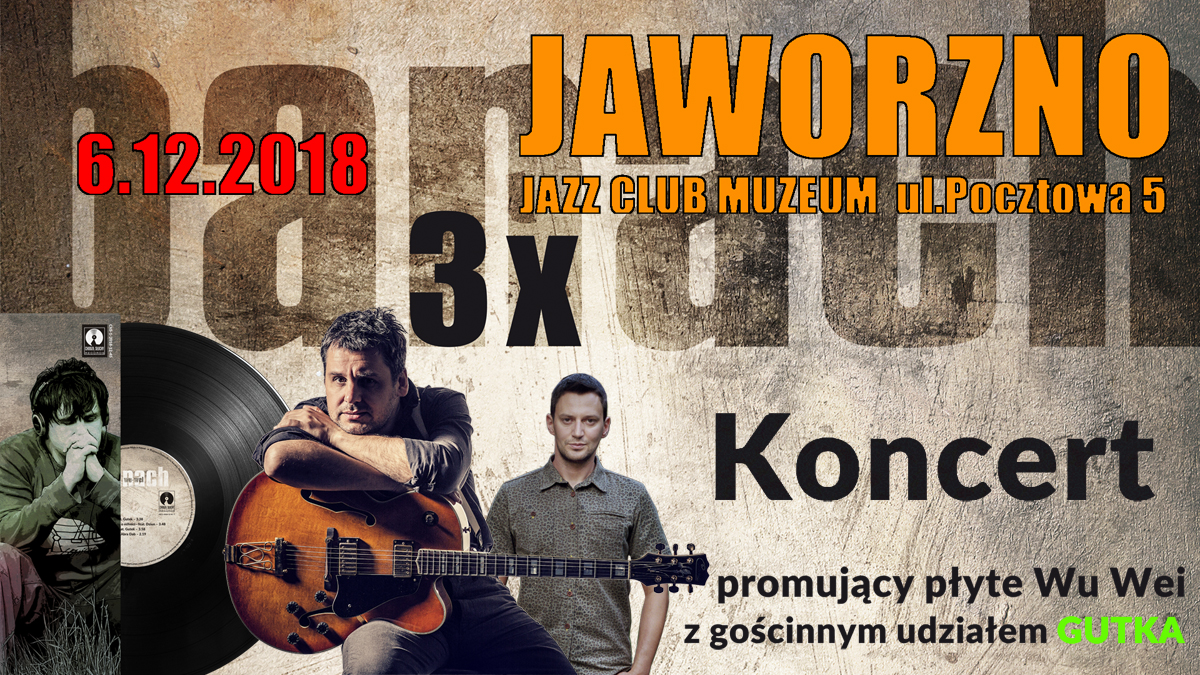 Z okazji wydania reedycji płyty Wu Wei Piotra Banacha mamy zaszczyt zaprosić Państwa na wydarzenie muzyczne pod tytułem 3XBANACH. Wydarzenie odbędzie się w dniu 06.12.2018 w Jazz Club „Muzeum” w Jaworznie, przy ulicy Pocztowej 5. W sąsiedztwie rynku.